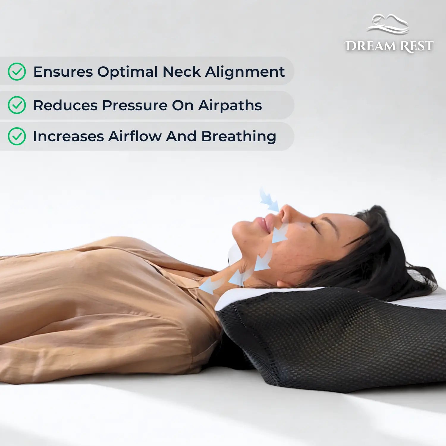 Discover how the DreamRest™ Orthopedic Pillow promotes easier breathing and relieves nightly stiffness for deeper, more comfortable sleep. Its ergonomic contour supports natural neck and spine alig...